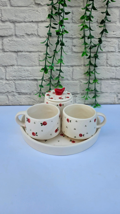 ست چایخوری سرامیکی دستساز دو نفره طرح شکوفه ای