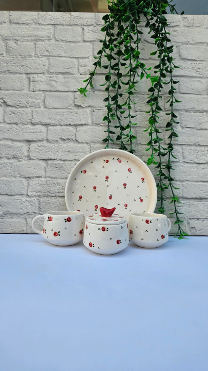 زیبایی در جزئیات است؛ معرفی ست چایخوری سرامیکی دستساز با طرح شکوفه