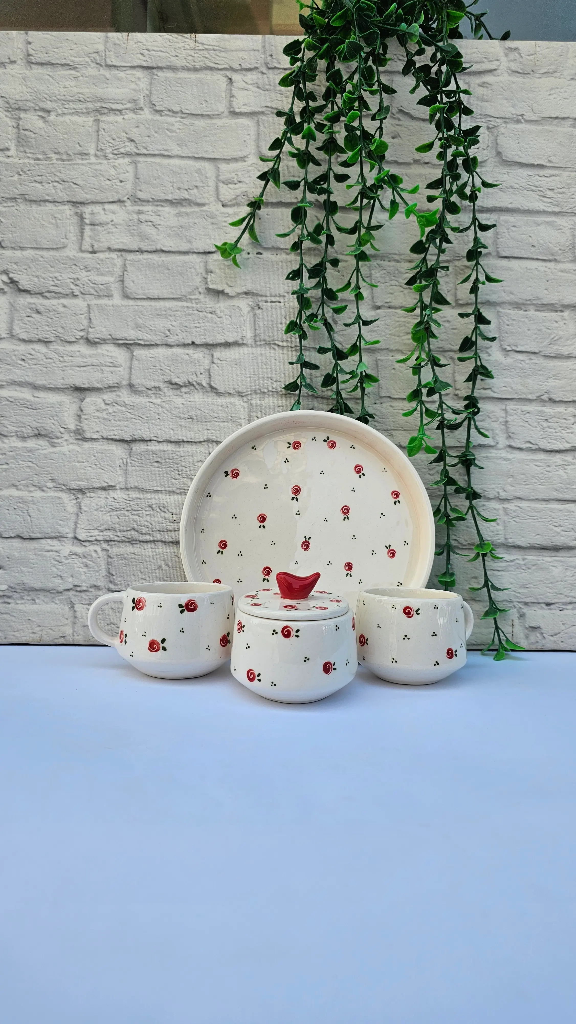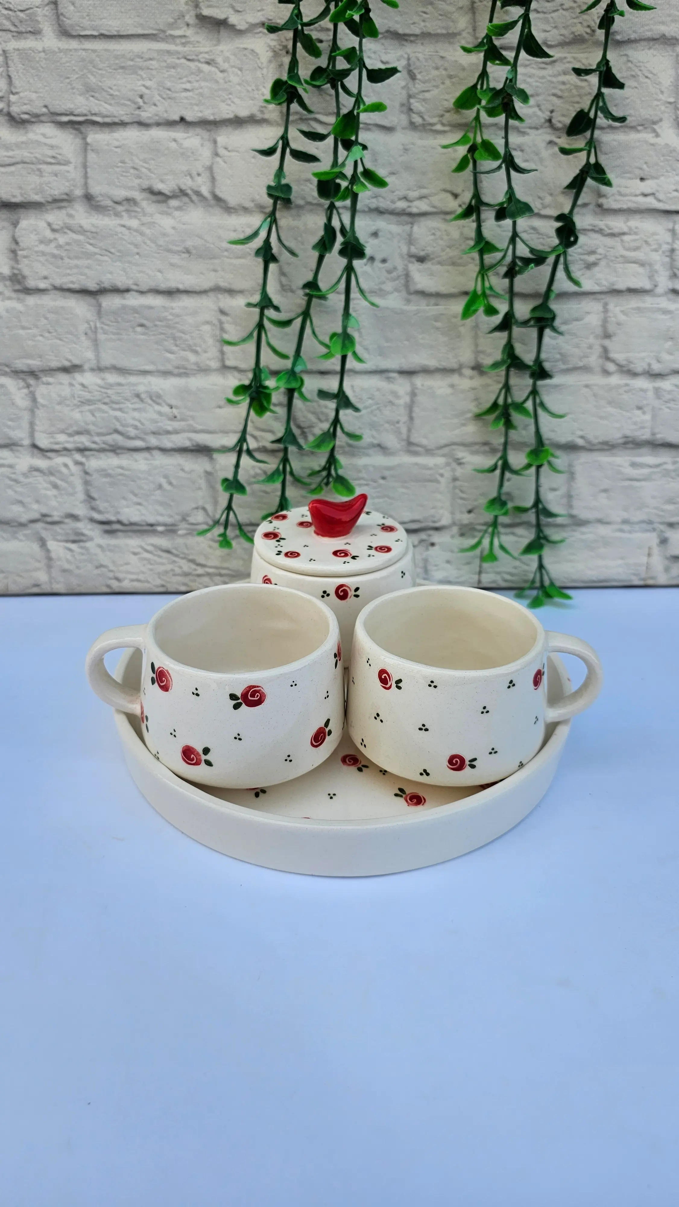 با این ست چایخوری منحصر به فرد، هنر و کارایی را به میز پذیرایی خود دعوت کنید. طراحی کلاسیک و در عین حال جذاب این مجموعه، با طرح شکوفههای سرخ پراکنده، جلوهای از ظرافت و دقت را به نمایش میگذارد. هر قطعه از این ست، به دلیل دستساز بودن، اثری بیهمتا و متفاوت است که حس گرما و اصالت را به فضای شما میبخشد.