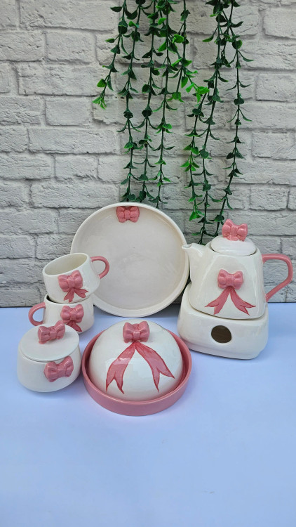 با این ست صبحانه خوری کامل و دستساز، هر روز خود را با هنر و زیبایی آغاز کنید. این مجموعه که با الهام از طرح دلنشین پاپیونی طراحی شده، با جزئیات برجسته و روبانهای ظریف، جلوهای خاص و منحصر به فرد به میز شما میبخشد. هر قطعه از این سرویس، حاصل عشق و هنر دست است و برای ساختن لحظاتی گرم و بهیادماندنی در کنار عزیزانتان طراحی شده است. با داشتن پایه وارمر، نوشیدنی شما همیشه گرم و دلچسب باقی میماند و مجموعه کامل ظروف، تمام نیاز شما را برای یک صبحانه دونفره بینقص فراهم میکند.
