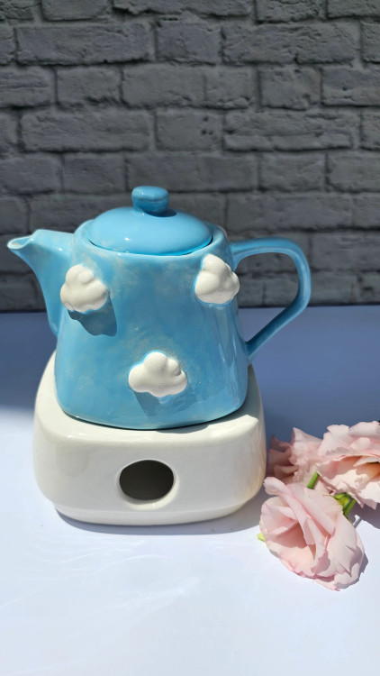 قوری و وارمر سرامیکی مربعی طرح ابری