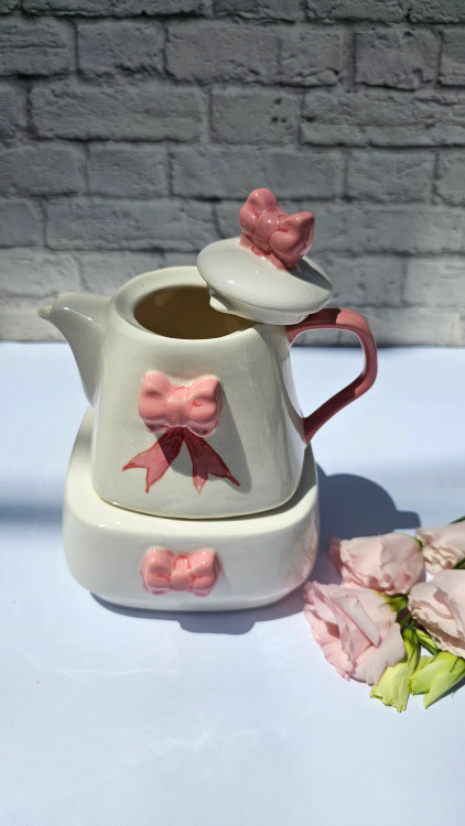 قوری و وارمر سرامیکی مربعی طرح پاپیونی