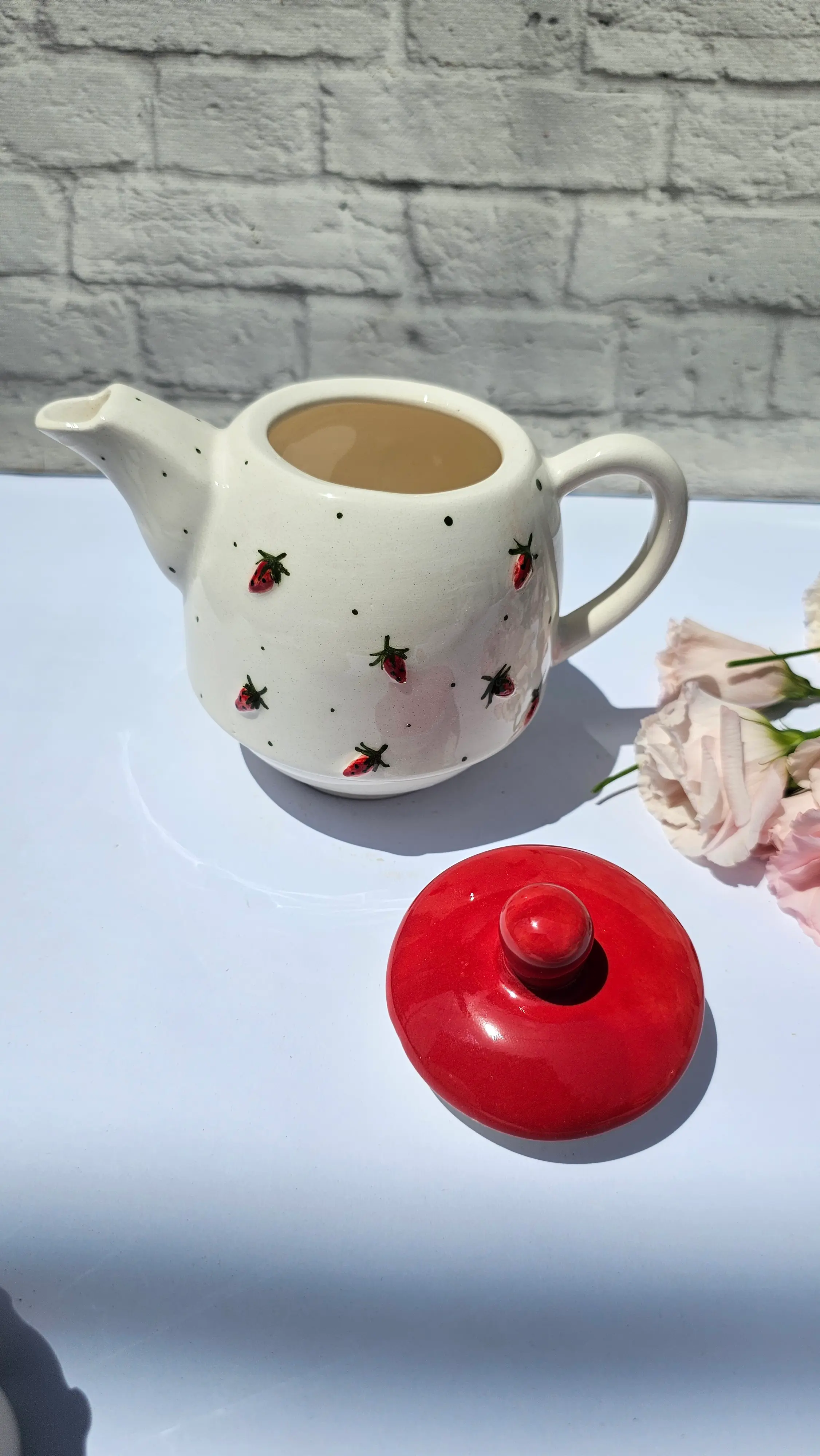 با قوری سرامیکی دستساز طرح توتفرنگی، لحظات چایخوریتون رو به یک تجربه شیرین و لذتبخش تبدیل کنید. این قوری با طراحی جذاب و رنگهای دلنشینش، حسی از شادابی و طراوت رو به آشپزخونه شما میاره و یک انتخاب عالی برای هر خونهای هست.