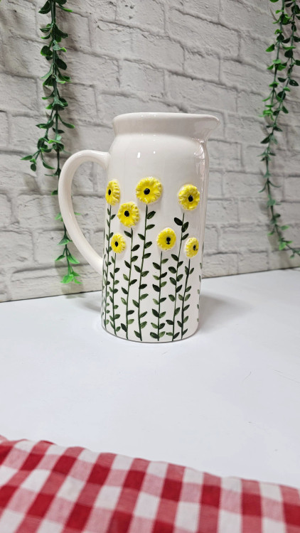 این پارچ آفتابگردان فقط یک ظرف نیست، بلکه یک آیتم دکوراتیو قدرتمند است: